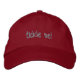 Schrift, Stickerei auf einem Hut. Suggestion: roter Hut mit hellgrauer Schrift. Wenn Sie es vorziehen, nicht gekitzelt zu werden, passen Sie bitte die Schrift an. Es kann personalisiert sein.