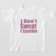 Dieses Shirt ist perfekt für das aktive Mädchen (oder den Jungen, der Rosa und Glitzer Liebe), das will, sicherzustellen, dass jeder weiß, dass er nicht schwitzt, dass er funkelt. Es ist eine Grafik, damit man die Wörter nicht ändern kann. Wie immer Sie die Farbe des Shirts ändern können, aber vorsichtig sein, weil die Änderung der Hintergrundfarbe die Wortfarbe ändert. Es ist kein echter Glitzer, der einfach so aussieht. Macht ein großartiges Geschenk.