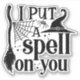 Dieses klassische Halloween-Design präsentiert den sprichwörtlichen Satz "I Put a Spell on You" in einem kühlen, gotisch inspirierten Schriftart. Das Schwarz-Weiß-Farbschema verstärkt die unheimliche Atmosphäre und macht das Design perfekt für die Halloween-Saison. Zu dem Text gehören ikonische Hexenelemente, darunter ein spitzer Hexenhut, ein Broomstick, ein Spinnennetz und eine winzige Spinne, die alle angeordnet sind, um eine bezaubernde Komposition zu schaffen. Die subtile Detaillierung der Punkte rund um den Text fügt eine Touch von magischem Charme hinzu.