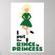 Dieses "I Put the Rince in Princess Irish Dance Poster" enthält einen irischen Tänzer, mit blondem Haar und grünem Kleid, tanzend Hartschuh.