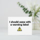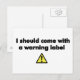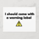 Ich sollte ein Warnschild mitbringen Postkarte