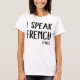 Dieses, das ich französisches (Fischrogen) Shirt spreche, wird bedeutet, durch eine lustige Frau getragen zu werden, die vortäuscht, zu sein jemand, die französisch spricht, aber, wenn Sie einen naheren Blick nehmen, sehen Sie, dass es ein Witz ist.