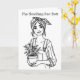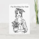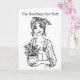Niedliche Erwachsenenkarte für einen Pflanze liebenden Freund. Hübsche Dame, die eine Pflanze mit einem Zitat hält, in dem steht: "Ich wüte für dich!" Niedliche Pflanze und inspirierendes Zitat. Im Inneren ist ein anderer Wortgefecht, "glauben Sie an sich selbst".