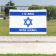Ich stehe mit Israel Zoll weißen Text Israel Flaggen Banner. Die israelische Flagge.