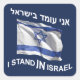 Stehen Sie nicht nur mit Israel, stehen Sie in Israel. Enthält eine israelische Flagge. Der englische Text unter der Flagge lautet "I STAND IN ISRAEL". Hebräischer Text über der Fahne lautet: "Ani omed b'Yisrael" (א י ע מ ד נ ו ). Komm Zuhause, mach Alija. Nehmen Sie an denen teil, die hier geboren waren und denen, die Zuhause gekommen sind. Es gibt keinen besseren Weg, Israel zu unterstützen, als Bürger zu werden und hier zu leben.