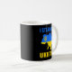 Ich stehe mit der ukrainischen Karte und ukrainisc Kaffeetasse