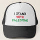 Ich stehe mit Palästina schwarz rot grüner Grunge Text Trucker Hat. Erhältlich in vielen Farben und Stilvarianten.
