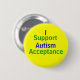 Gelber Knopf mit Grünem und Blau: Ich stütze Autismus-Annahme