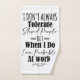 Dieses lustige grafische Sprichwort-Design "Ich toleriere nicht immer dumme Leute, wenn ich bei der Arbeit bin" ist perfekt für Sie oder jemanden, den Sie kennen, der ein gutes Gefühl für Spaß hat. Ein tolles Geschenk für Freundesinnen, Familienmitglieder und Mitarbeiter zum Geburtstag, zu Weihnachten oder zu jedem besondere Anlass.