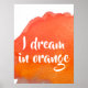 Inspiration Zitat träume ich in Orange für Liebhaber der Farbe Rosa. Ein boho niedliches Aquarelldesign mit orangefarbenem Kunstangebot.
