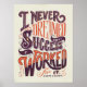12x16 handgeschriebenes Plakat, das ich nie von Erfolg träumte, für den ich gearbeitet habe, gedruckt in archivalem heavyweight matt paper