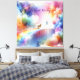 Aquarellbilder treffe ich auf der Rainbow Bridge. Eine skurrile, traumhafte Szene mit einer bunten, ätherischen Regenbogenbrücke, die sich über eine fantastische Landschaft erstreckt, die von sanften, wirbelnden Wolken in lebhaften Blautönen, Rosa und Gelb gefüllt ist. Die Atmosphäre ist ruhig und zauberhaft, die ein Gefühl von Staunen und Ruhe hervorruft, umgeben von zauberhaften Sternen und Lichtwegen, die das zauberhafte Ambiente der Szene verstärken.