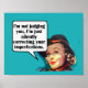 Die lustige Retrofrau sagt: "Ich beurteile dich nicht, ich korrigiere einfach schweigend deine Unvollkommenheiten." Ein cleveres und witziges Sprichwort von einer Vierzigerfrau mit einem stilvollen Hut und einem roten Lippenstift. Funny für Freunde und Fake Freunde.