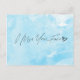 Soziale Distanzierung kann schwierig sein, aber man muss seine Verbindungen nicht verpassen. Diese einfache, aber süße Postkarte lautet "I Miss Your Face", eine handgeschriebene Schrift mit einem kleinen, scharfen Herz auf einem weichen, blauen Aquarellhintergrund. Überraschen Sie jemanden, den Sie heute mit einer Postkarte vermissen! Design von The Gepunktet Olive.