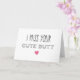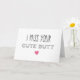 Diese stylische und humorvolle Karte enthält den Text "I Miss Your Niedlicher Hintern" mit einem rosa Herz darunter. Befinden Sie sich in einer Fernbeziehung? Wenn ja, ist dies die perfekte Karte, um Ihre wichtige andere zu senden! Es wird ihn oder sie lächeln und gleichzeitig lachen lassen! Dies ist ein modernes, aktuelles und einzigartiges Design, das hier auf Zazzle nicht üblich ist. Diese Karte ist in drei verschiedenen Größen erhältlich: eine große Grußkarte mit 8,5 x 11 Zoll, eine Karte mit normaler Größe mit 5 x 7 Zoll und eine kleinere Karte mit 4 x 5,6 Zoll. Das Design wird in jeder dieser Größen großartig aussehen! Die Innenseite dieser Karte ist leer, damit du deine eigene Nachricht schreiben kannst. Wenn Sie eine typisierte Nachricht wünschen, klicken Sie auf die Schaltfläche "Anpassen" rechts neben Ihrem Bildschirm und Sie können sie eingeben, bevor Sie bestellen! Bitte senden Sie mir per Zazzle eine Nachricht, wenn Sie Fragen zum Design dieses Produktes haben.