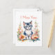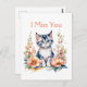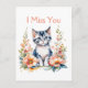 Ich vermisse dich | Graue Kätzchen in rosa Blume Postkarte
