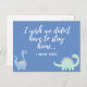 Eine Postkarte, die den Lieben mitteilt, dass man sie mithilfe niedlicher Dinosaurier vermisst!