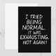 Ein lustiges sarkastisches Zitat über den Versuch, normal zu sein. Ideal für Spaß-Liebhaber und alle, die witzige Redewendungen mit einer rebellischen Drehung genießen.