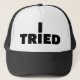 ICH VERSUCHTE Spaß und ironischen Slogan auf Fernlastfahrerhut, Schwarzes, die lustige typografische Aussage, inspiriert durch Fernsehkomödiencharakter-Frank rossitano.