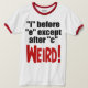 " ich" vor "e" ausgenommen nach "c" - sonderbar! - Lustiger Wordsmith-T - Shirt - englische Sprachrechtschreibung