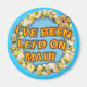 Blume Lei auf blauem Untergrund mit scharfem Text "I VE LEI'D ON MAUI"