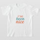 Ein buntes und spielerisches T - Shirt-Design mit der Phrase "I've Been Nice" in festlichem, handgeschriebenem Stil. Ideal, um den Feiertagssjubeln zu verteilen und dem Kleiderschrank eine Touch Spaß hinzuzufügen.