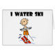 Ein niedlicher Strichmännchenwasserskifahrenentwurf, der ein männliches Strichmännchen auf Wasserskis und -text, der, kennzeichnet "mich Wasser-Ski" auf T - Shirts, Tassen, Hoodies, Behälterspitzen, Karten, Aufklebern, Taschentaschen, Magneten und mehr liest.