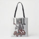 Ein Skelett, das eine E-Gitarre spielt, mit den Worten, die ich euch rocken werde. Dieses Design sieht auf dieser Totbeutel wirklich effektiv aus