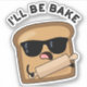 Ich werde Be Bake Funny Bread Movie Pun zeigt eine niedliche Scheibe Brot macht seine beste Film-Linie "I'll be back". Perfektes Pun-Geschenk für Familien und Freunde, die niedliche Brot Filmpistolen Liebe.
