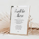Dieses elegante Schwarz-Weiß-Gedenkplakat ist eine schöne Art, um diejenigen zu würdigen, die vergangen sind, aber mit Ihnen im Geiste feiern, indem sie dies in einem Rahmen platzieren und auf den Stuhl setzen, in dem die Person gesessen hätte. Teil der Alejandra Hochzeitskollektion.