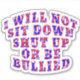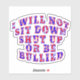 ICH WERDE NICHT SITZEN NACH SCHUHE ODER BULLIED Abzeichen, Buchstaben wechseln zwischen rot und blau, rote Buchstaben in blau, blaue Buchstaben in rot, dann gefüllt mit Sternen in verschiedenen Größen. Dieses Design ist auf vielen anderen Produkten in meinem Zazzle Shop erhältlich. Sprechen Sie für Ihre Überzeugungen oder laufen Sie Gefahr, Ihr Recht zu verlieren, dies zu tun.