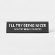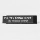 Ich werde versuchen, netter zu sein, du versuchst, schreibtischnamensplakette