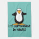 Ich werde von den Idioten umgeben! Lustige und sarkastische Beleidigung mit einem Schwarzweiss-Pinguin mit orange Füßen und Schnabelgraphik mit einem Türkisblau/cyan-blauen einer Farbe des grünen Hintergrundes. Völlig kundengerecht.