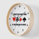 Zeigen Sie Ihre wry bridge / duplizierte Bridge-Einstellung mit dieser Uhr mit den vier Kartenkarten-Anzügen zusammen mit dem folgenden Bridge-Sprichwort: "Ich widme meine Freizeit dem großen Bridge-Spiel".