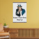Das Poster von J. M. Flagg aus dem Jahr 1917 wurde eingesetzt, um Soldaten sowohl für den Ersten Weltkrieg als auch für den Zweiten Weltkrieg zu rekrutieren. Flagg benutzte eine modifizierte Version seines eigenen Gesichts für Uncle Sam, und der Veteran Walter Botts stellte die Pose bereit.