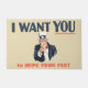 Setzen Sie die Angst vor Onkel Sam in Ihre Gäste mit dieser lustigen Tür. Es sieht aus wie das klassische Uncle Sam Rekrutierungspaket mit einer alten Illustration von Onkel Same und der Nachricht, die ich IHNEN oben GEWOLLT habe. Die Nachricht unter der Grafik lautet "WIPE YOUR FEET", aber dieser Text kann mit Ihrer eigenen Nachricht angepasst werden, wenn Sie es vorziehen.