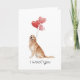 Diese anpassbare Valentinstagskarte zeigt ein Wasserfarben-Porträt eines Golden Retrievers, der einen Strauß herzförmiger Luftballons hält, mit der Aufschrift "Ich wuffe dich".