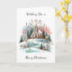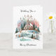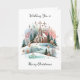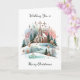 Weihnachtskarte mit einer wunderschönen Aquarellkirche, schneebedeckten Gärten und Glitzern. Sie können den gesamten Text auf der Karte personalisieren.