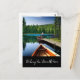 Behalt in Touch mit dieser Postkarte eines Mannes, der auf dem Dock, umgeben von den Wäldern auf dem See, angeln möchte.