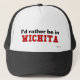 Ich würde eher in Wichita sein! Sind Sie von Wichita, Kansas? Haben Sie ein Freund- oder Familienmitglied, das Lieben Wichita, Kansas? Wenn ja dieses "ich würde sein eher in…" Hut ist, nach was Sie suchen! Die Ausrüstungsbeschreibungen "ich würde eher in" in der kleinen schwarzen Beschriftung in der Spitze und "im Wichita" in der großen roten Beschriftung an der Unterseite sein.
