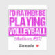Niedlicher Volleyballspieler Aufkleber in Rosa, der sagt, ich würde eher Volleyball spielen. Ein lustiges Volleyball-Coach-Geschenk.