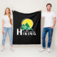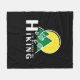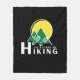 Diese Fleecedecke ist perfekt für Wanderfreunde. Die Grafik besteht aus Bergen mit einer Sonne im Hintergrund und Drucken von Wanderstiefeln durch die Berge mit den Worten "I'd Rather Be Wandern" unten.