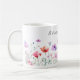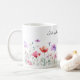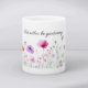 Schöne Aquarell-Blume grenzen an diese Tasse. Für die saisonale Wohngestaltung sind Tasse eine leichte Abwechslung vom gemütlichen Winter zu einer bunten Frühlingsästhetik. Text kann geändert werden. AI unterstützte Grafik, die mit kommerzieller Lizenz erworben wurde. Kunstwerk: MokoDE