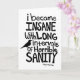 Edgar Allan Poe war ein amerikanischer Schriftsteller und Dichter aus dem 19. Jahrhundert, der für seine Geschichten über Horror und Makabre berühmt war. Das Zitat auf dieser Grußkarte, "Ich wurde verrückt mit langen Intervallen schrecklicher Sanität", wurde von Poe in einem Brief geschrieben, der seinen Staat des Geistes durch den Tod seiner geliebten Ehefrau beschrieb.