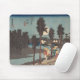 Station 13, Numazu, Wanderung, "Gelbe Dämmerung" von den dreiundfünfzig Stationen des Tokaido. Das von Hoeido und Senkakudo 1834 veröffentlichte Set. Eines der besten Designs aus dem Set, das den Reisenden zeigt, die kurz davor sind, das Dorf Numazu unter der riesigen Mondschlucht zu betreten. Auf beiden Seiten befinden sich dunkle Kiefern, und diese Station ist berühmt für ihren Wald, der sich entlang der Küste erstreckt. Einer der Reisenden trägt eine rote Tengu-Maske auf seinem Rücken, das Zeichen einer Pilgerreise zum Shinto-Schrein von Kompira.