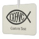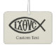 Ichthys or Ichtus Christian symbol. Fish outline with greek letters "ΙΧΘΥΣ". Custom background color. Custom text on both sides.