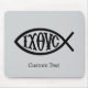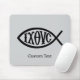 Ichthys or Ichtus Christian symbol. Fish outline with greek letters "ΙΧΘΥΣ". Custom background color. Custom text.