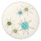 Dieses Iconic AtomSternexplosion-Keramik-Zugmuster kennzeichnet iconic AtomSternexplosionen. Das ist recht! Die alte Schule, cremefarbener Hintergrund mit Goldtupfen ist- der perfekte Hintergrund für den vibrierenden Türkis, den beruhigenden Sellerie und farbigen die Kreise des kitschy Birnengrüns. Die Stellen der Farbe werden sporadisch in verschiedene Größen mit der Bedeckung der schwarzen v-förmigen Linien, um die Mod Sputnik-Sternexplosionen zu bilden gelegt. Angeredet nach richten Fünfzigerjahre Muster, dieser retro inspirierte Entwurf hat alles an, das Sie die moderne Mitte des Jahrhunderts wirklich sein müssen.