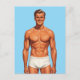 This striking illustration captures a single male figure with an infectious, confident smile, executed in the bold, graphic style of a vintage advertising poster from the mid-20th century. The artistic technique is characterized by smooth, airbrushed transitions and clean lines, emphasizing an idealized form and a sun-kissed, healthy glow. The figure stands in a strong, frontal pose, embodying the aspirational image of youthful health and confidence prevalent in classic illustration and commercial art. The focus is entirely on the figure's chiseled physique and charismatic expression, making it a powerful, standalone statement. This piece successfully evokes the nostalgia and optimism of a bygone era of graphic design, transforming the figure into a timeless icon of vigor and masculine idealization. It is a visually punchy and uplifting piece for enthusiasts of retro illustration and iconic visual language.