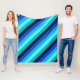 Eine mittelgroße Fleecedecke mit coolem Muster aus diagonalen Streifen in Marineblau, Kobaltblau, Himmelblau, Eisminze aquamarin und helltürkis.
